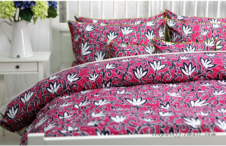 玫紅滾邊全棉床品四件套